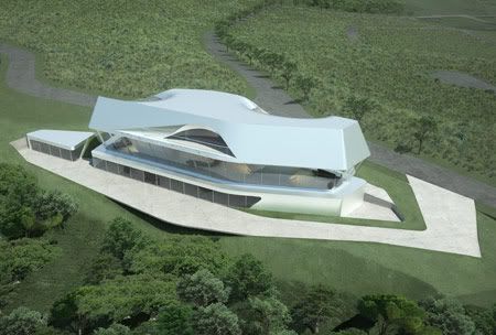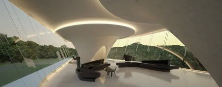 Esta extravagante casa forma parte de los 20 proyectos de próxima generación "Next-Gene 20" en Taiwán. Diseñada por Zaha Hadid y presentada en Venecia en la exposición de arquitectos, cada parte de la casa se diseñó para impresionar a la audiencia. Desde las gigantescas e increíbles ventanas diseñadas específicamente para capturar luz y dar un ambiente mas iluminado, hasta las paredes que son en diagonal y otros angulos raros.