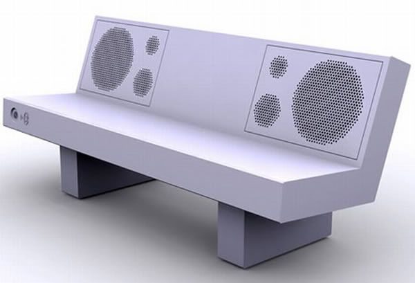 Este banco de ciudad es de lo más original. Tiene unos altavoces estéreo en el respaldo y se le puede conectar un móvil musical o cualquier otro dispositivo que sea capaz de reproducir música y conectarse por Bluetooth. La idea es que los grupos de amigos puedan compartir su música (a bombo y platillo) con todos los demás.